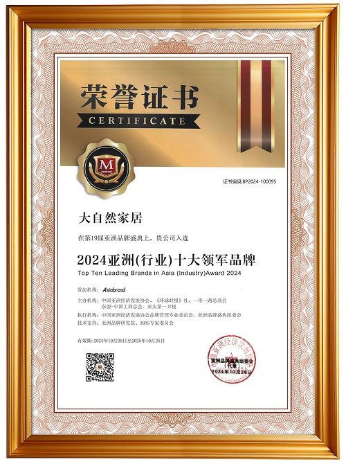 品牌力量,光耀全球。大自然家居連續七年榮膺“亞洲品牌500強”殊榮,見證了其在業界的深厚積淀與卓越成就。這一連串的榮譽,如同一枚枚勛章,鐫刻著大自然家居多年來深耕行業的足跡。同時,它們更化作鞭策與鼓舞的力量,激勵著大自然家居在追求卓越的道路上繼續前行。未來,大自然家居愿繼續爭當行業先行者,踐行長期主義,堅持可持續發展,領航家居行業高品質發展道路。
